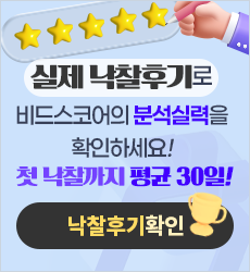 소망하며 기도하던 행운의 여신을 비드스코어님이 보내 주셨네요 그것도 억억억억억 소리나도록 말입니다.먼저 비드스코어의 연구관들께 진심으로 감사드립니다.이 바닥 누구나 낙찰에 대한 스트레스가 이만저만 아니지만 이제 귀사를 믿고 낙찰된 사업을 잘 완공할수있도록 더욱 노력하겠습니다.
